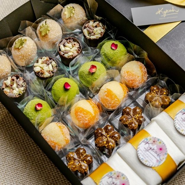 Uma caixa criada para impressionar em cada detalhe. Nossa versão Premium combina a seleção mais amada de doces finos da Kykah com a delicadeza dos nossos Pães de Mel artesanais, formando um presente completo, sofisticado e inesquecível.